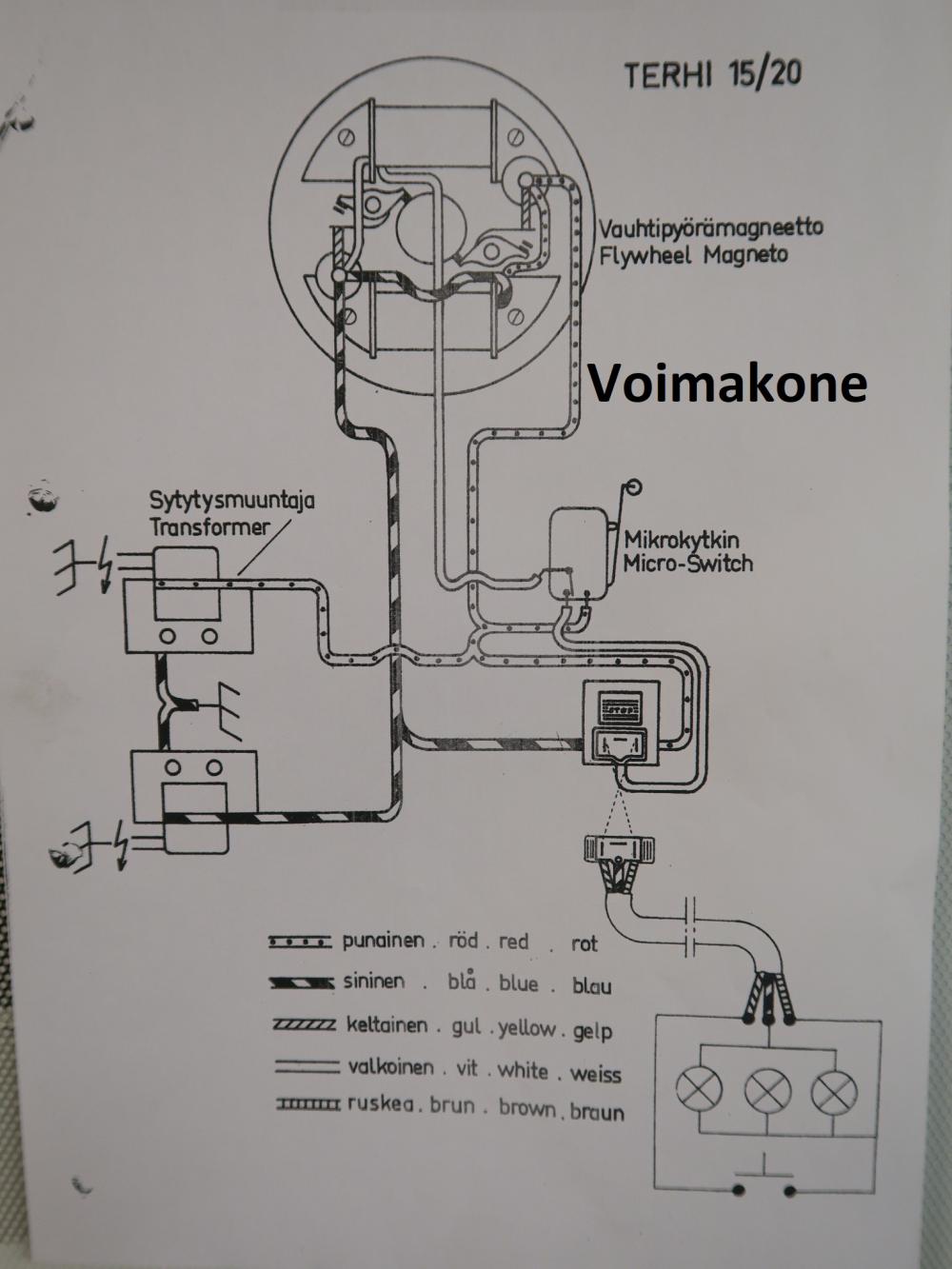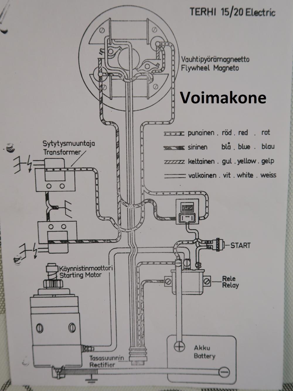 Terhi 15hv , 20hv ja 23hv (käsistartilla), sähkökytkentäkaava
